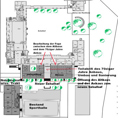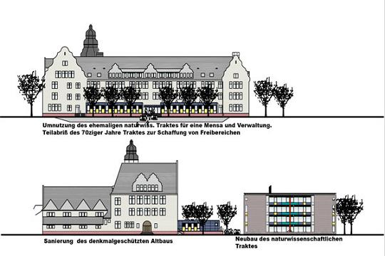 originalen Bausubstanz rückwärtig einen Klassentrakt an, mit